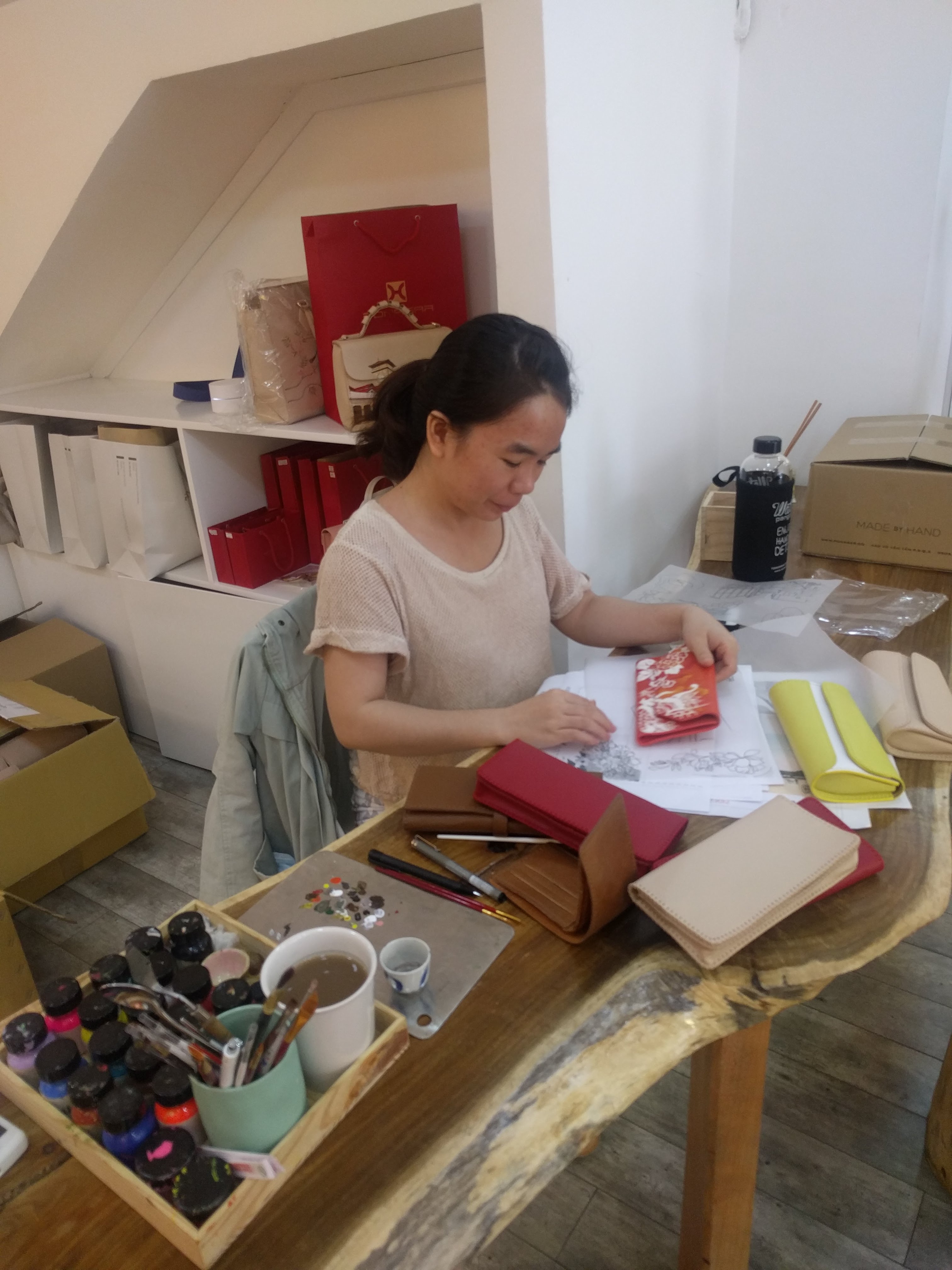 2018年1月11日 / 最終更新日 : 2018年1月11日 yukari Diary 【仕入れ編】1月7日~10日『新作!革製品も入荷』 【仕入れ編】 1月7日から10日までベトナムへ行ってきました!今回は今まで行ったことのない場所を歩き回って、質の良いものを探し歩いてきました。 そして出会った革製品☆ 上質で可愛らしく、しかもハンドペイント!! これには驚きました。 近々店頭に並びます❤️❤️ 新作プラカゴもありますよ。 完全オーダーメイドです! お楽しみに(^▽^)/ ⇩目の前でペイントしています。すごいですよね。